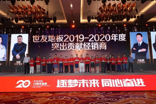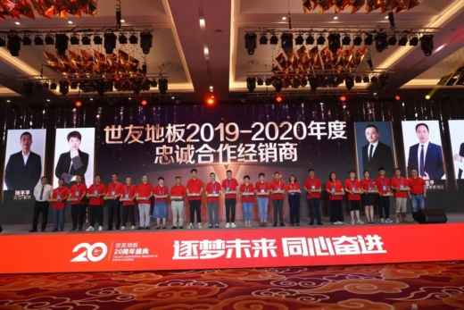 2021年6月17日,“逐夢未來·同心奮進”為主題的世友地板20周年盛典在浙江湖州龍之夢鉆石酒店盛大舉行。政府領導、行業專家、業內外大咖、全國主流媒體、世友全國各地經銷商們、合作伙伴等2000多人,匯聚太湖風景名勝區,一起回顧二十寒暑的發展歷程與企業榮光,共謀下一個時代宏圖。