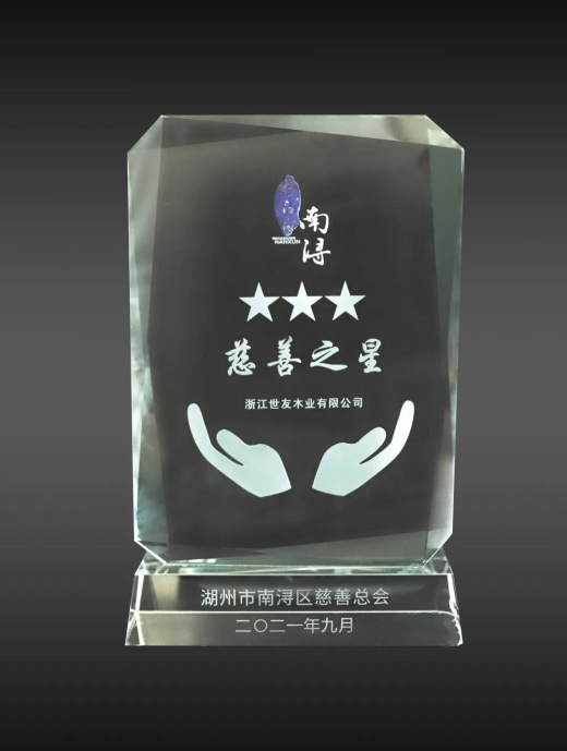 2021年9月2日,南潯區“慈善助力共同富裕”募捐活動暨2021年“慈善一日捐”動員大會隆重舉行,會上,浙江世友木業有限公司被南潯區政府授予“2020年慈善突出貢獻單位”、“三星級水晶晶南潯慈善之星”榮譽,彰顯了世友木業的社會責任與擔當。